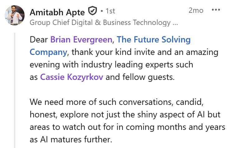 “The level of conversation exceeded anything I’ve ever experienced.” – Chief Digital Officer, $5B company.